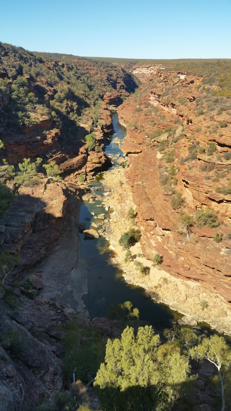 Up early to visit the amazing Kalbarri National Park and discover and be in awe of the stunning scenery, the deep gorges and the gently flowing Murchison River. We did tackle the longest walk first being a 6 km in and out hike, although that was instead of the full loop. We did decide to retain some energy for several more hikes this same day. Next we did the Z bend trail to the water’s edge and later two shorter walks at Hawks Head and Ross Graham lookout and river walk. All up we hiked in the order of 12 km for the day, most of which were quite steep so we are weary this evening.