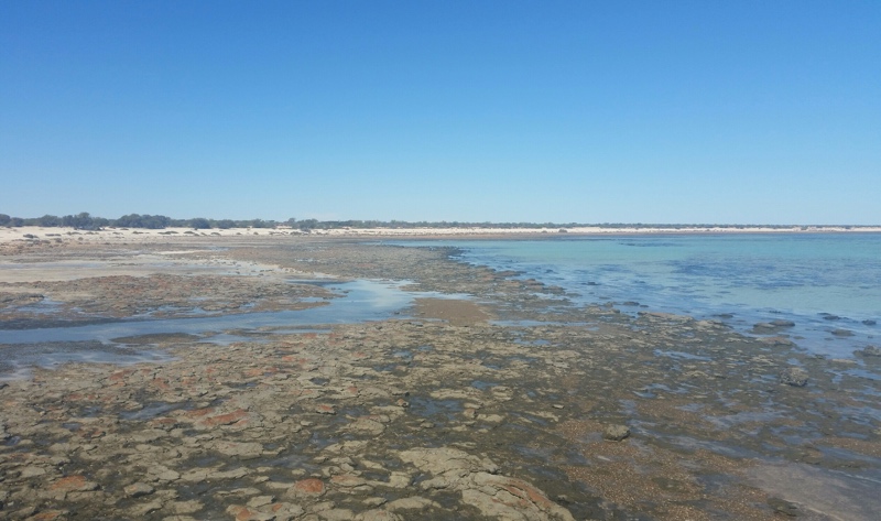 We left Kalbarri this morning at a very civilised 8:15 am and after bisecting the Kalbarri National Park for about 50 km, we headed north on highway one for Shark Bay World Heritage area. Our final destination for today is the little fishing hamlet at Denham, being on the western side of the peninsula but east side of Shark Bay. This is also about 22 km from Monkey Mia, an area famous for its daily dolphin feeding and a site that faces back east to the mainland.