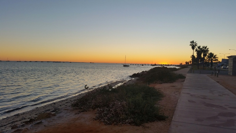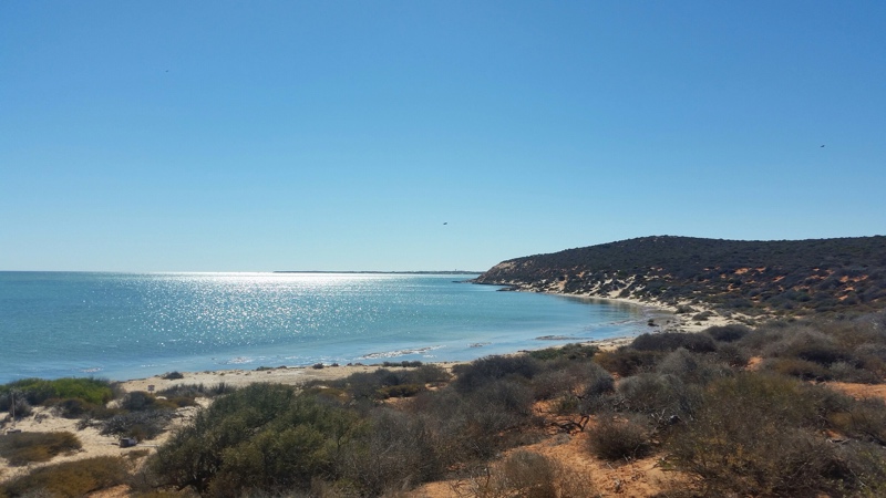 The next image is of Shark Bay then another looking back to the little harbour of Denham. There is good fishing in this area although it helps to have a boat it seems. And there are certainly some sophisticated units here. On our way back from tea this evening, we did encounter some proud fishermen cleaning their catch, including a Spanish mackerel, a good looking snapper and a red coral trout.