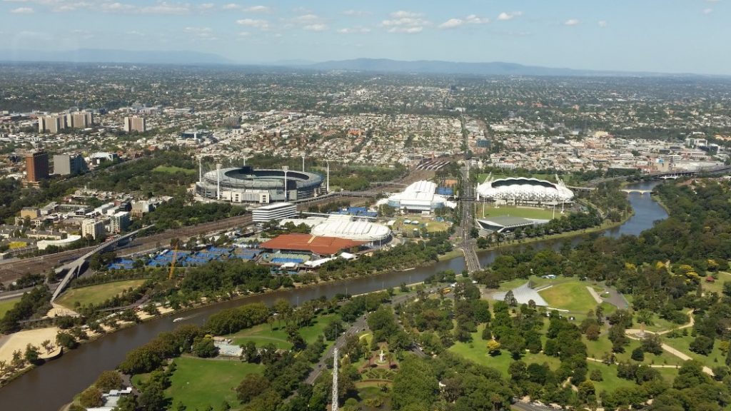 Looking north from the Shrine, to the Melbourne CBD. Eureka tower with its rival tall sibling emerging to the left. The view from Eureka tower. Looking east toward the mighty MCG and the other adjacent sporting precinct. Melbourne does do sport, domestic and international in a big way! And if you are not into sport, the lovely Dandenongs in the backgrounds are a lovely and scenic place to visit.Inside the mighty MCG. OK, not on my recent visit but early 2017 when 88,000+ people attended a T20 between the two rival Melbourne teams. A special place to many Australians.More and more, Melbourne is embracing the surrounding waters of Port Philip Bay. Here is the view from Willamstown looking east, reminding me of my long deceased father who made the long daily work commute to the dockyards nearby. Gratitude to him for his many years of dedication to hard work and family.Melbourne’s Botanical Gardens are truly a treasure and well worth a visit, especially on a hot day. So beautiful, so close to town, and nearby is the (perhaps) undervalued Yarra River.For a very long time, Melbourne has had a very vibrant music scene, with live bands performing and many resident musicians living in this town. On the recent new year’s eve, was treated to a free concert in the Footscray Gardens. Diverse bands, diverse cultures, no alcohol, fine night, fireworks, and a wonderful and safe night of joy and good cheer. Thankfully, despite the ‘fake news’, Melbourne is a successful and cohesive multicultural town.New Year’s Eve crowd at Footscray Gardens, with a shout out to a university that set me on my current pathway of being a mental health practitioner. Again, grateful for that opportunity, so in several ways now, Footscray holds special memories for me, and now it is so growing, beyond simply being the ‘poor western suburbs’. Plenty of good cheap food to be had here too. Enjoy!