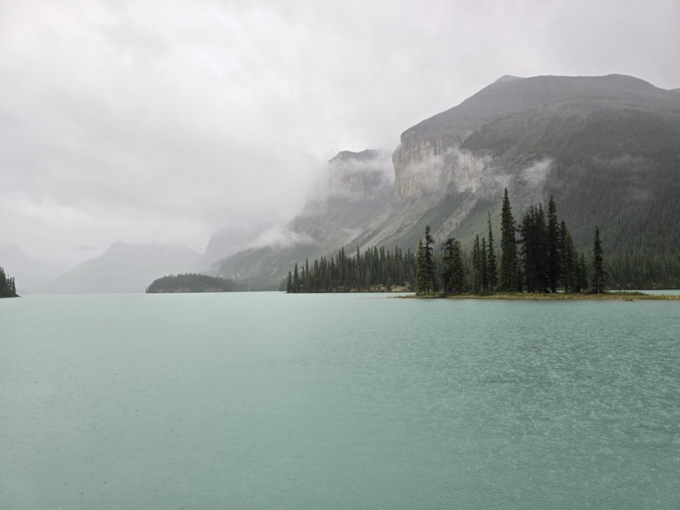 Today was very wet and cloudy for our cruise on Lake Maligne yet we could still appreciate its beauty among the mist and rain.