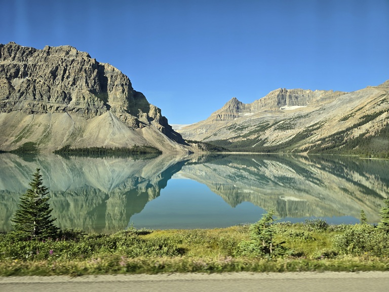 And randomly, the reflections in the lake. So smooth and calm this fine warm day approaching Jasper.