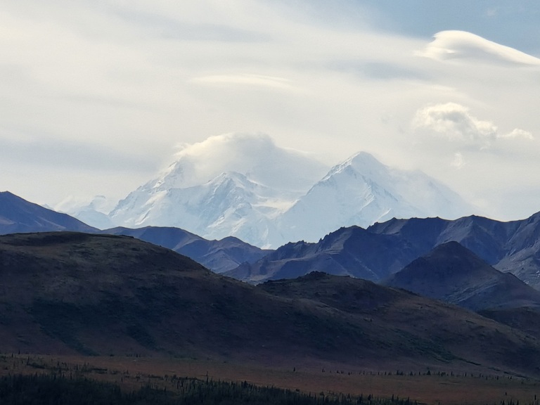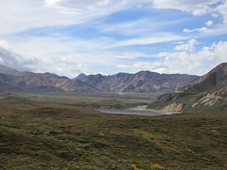 Unfortunately we could only view Mt Denali from a distance due to the road in the park truncated by many miles due to recent road slips and landslides, a common occurrence here given the dynamic weather and the thawing permafrost that plays havoc with the road.
